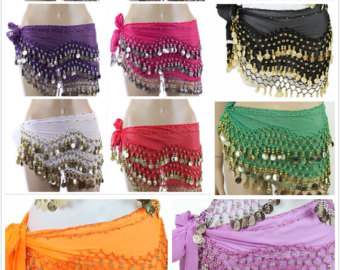 Red with gold coins; black and white zebra print with silver coins; black with gold coins; brown snake print with gold coins; hot pink with gold coins; hot pink with silver coins; sugar plum/magenta with gold coins; purple with gold coins; purple with silver coins.